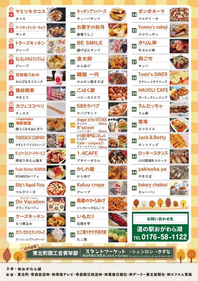 2025年10月12日(日)・13日(月・祝)、青森県東北町の「道の駅おがわら湖」で、秋の恒例イベント「キッチンカーフェス」が開催されます!