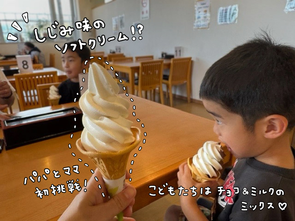 今年の夏、家族で道の駅おがわら湖を訪れたときに、しじみ味のソフトクリームを初体験してきました🍦