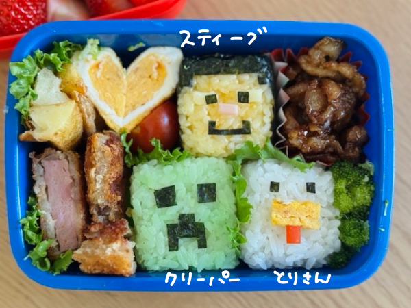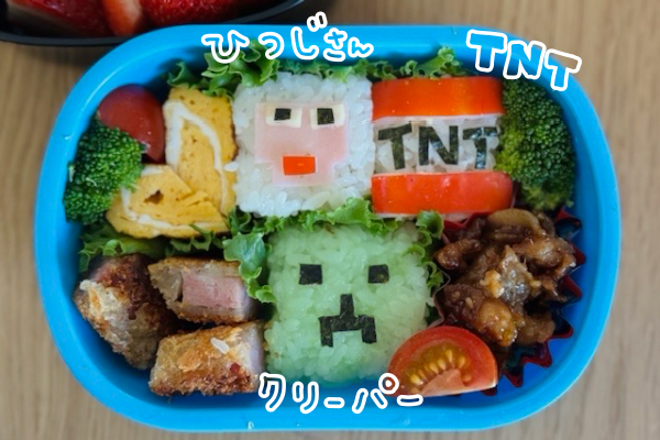 ということで、マイクラとまいぜんシスターズが大好きなちびっこたちのために、気合いを入れてキャラ弁づくり!