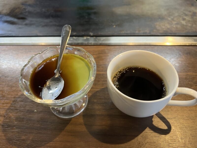 私は、抹茶プリンにコーヒーを飲みました。