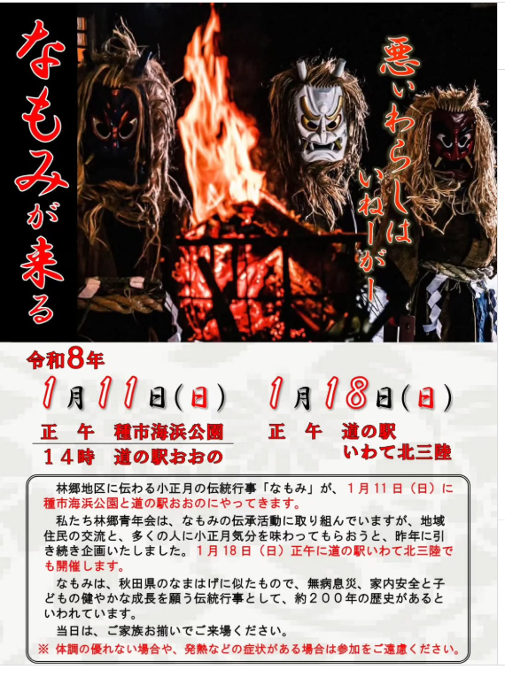 👹 林郷地区に伝わる小正月の伝統行事「なもみ」開催!