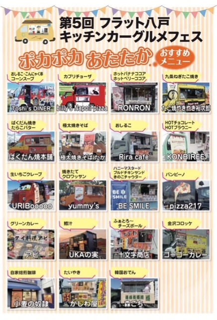 なんと21台のキッチンカーが大集合! 八戸の美味しいグルメやスイーツを食べ歩きできちゃう、食いしん坊さん必見のイベントだよ!